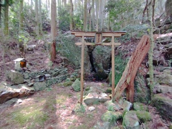展望台から約22分で「瀧不動明王」に到着しました。説明看板によると修験者が修行する滝のようで、「高取神社」にあった「高神の滝」と同じ感じでした。