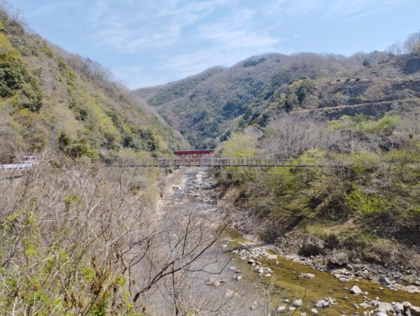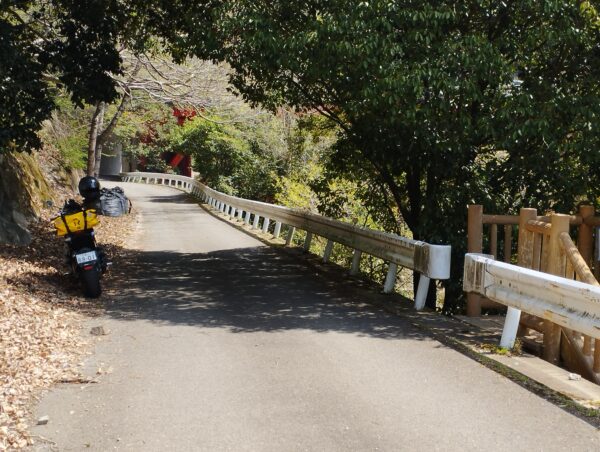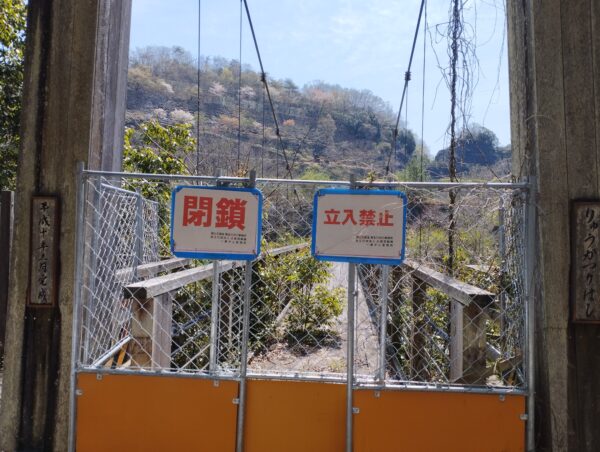 バイクを駐めた場所に戻る途中に「竜化吊橋」があります。歩行者専用の吊り橋のようでしたが、残念ながら通行禁止になっていました。