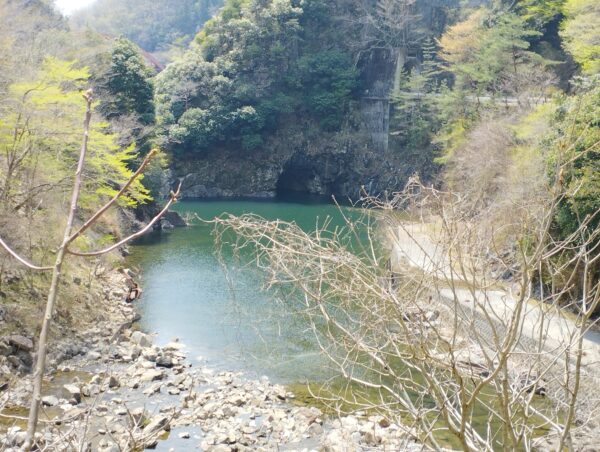 ナビで「龍化渓谷」を目的地にしていたのですが、「龍化隧道」はもっと先でした。とりあえず渓谷に降りて「龍化隧道」に向かいましたが300mくらい歩きました。(もっと先に最寄りの階段があった。)