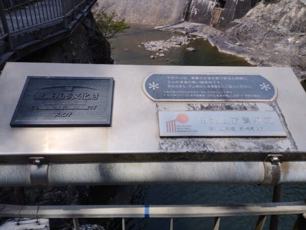 ダムの手前の橋に掲示されている銘板です。登録有形文化財なんですね。
