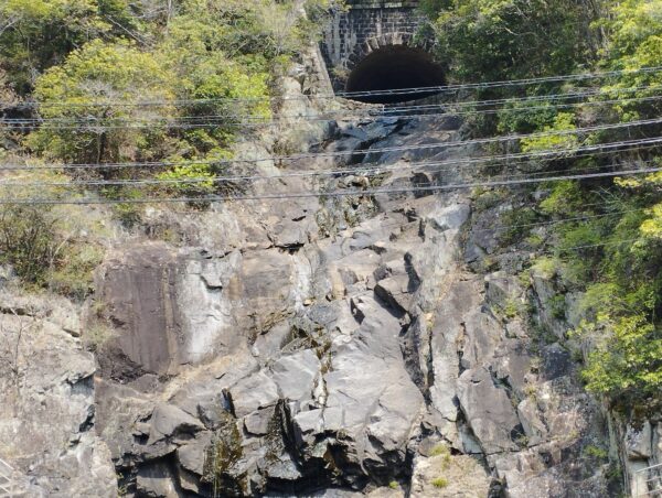 ダムの右手にトンネルの水路がありました。水量があれば滝みたいに見えたと思いますが、残念ながらほとんど水は流れていませんでした。