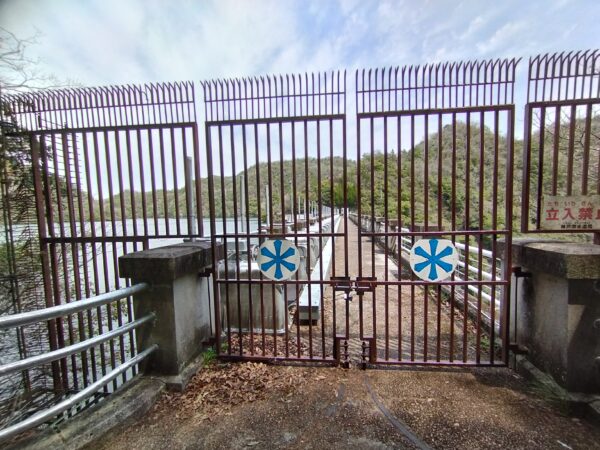 えん堤は柵で封鎖されており、立ち入ることはできません。