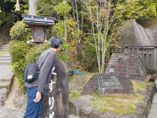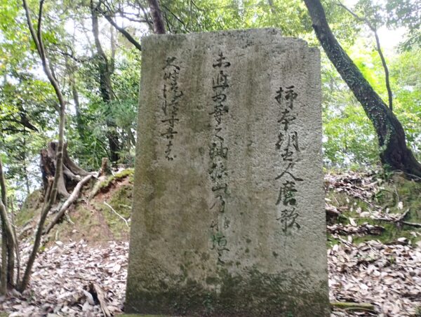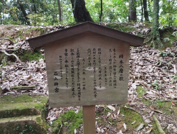 「鳥居」を抜けてすぐの所に「柿本人麿」の歌碑がありました。「をとめらが 袖(そで)布留(ふる)山の端垣(はしがき)の 久しき時ゆ 思ひきわれは」とあります。「布留山」は「石上」のことを指しているそうです。