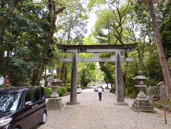 次は「大和(おおやまと)神社」に向かいました。「鳥居」を抜けた先に「参拝者駐車場」があります。「鳥居」の内側は未舗装路なので、事前に調べていないと車両で乗り入れるのは難しいですね。