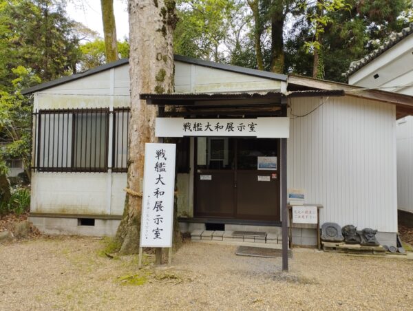 「戦艦大和展示室」というプレハブの建物がありました。入館料は若干の寄進なのですが、照明も点いていなくて無人だったので、外から覗いただけです。「戦艦大和」の模型がありましたね。