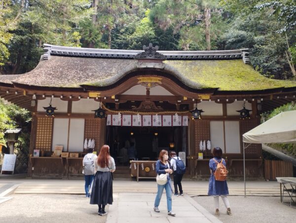 「狭井神社」の「本殿」です。右手に見える白いテントが「登拝届」を記入する場所です。