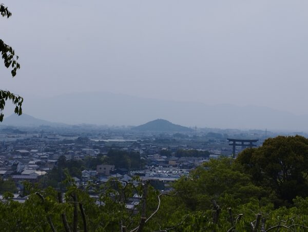 展望台からの景色です。左手に見える山が「畝傍山」だそうです。「橿原神宮」と「畝傍山」に行く計画も立てているのですが、「大神神社」の近くなんですね。奈良の地理感覚が無いのでちょっと驚きました。