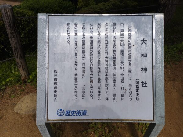 駐車場に戻る途中で「大美和の杜展望台」に立ち寄りました。ここに「大神神社」の説明看板があったのですが、やはり「大神神社」も日本最古の神社なんですね。