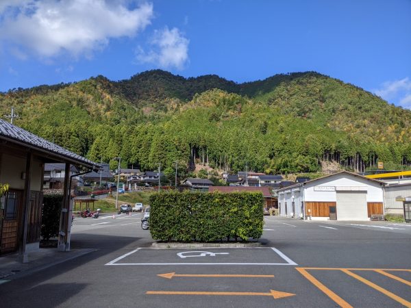 ローソンを出発した後は「大野ダム」経由で「道の駅美山ふれあい広場」でトイレ休憩をしました。平日なのにバイクが結構居ました。。道の駅から北側の山を撮ってみましたが、紅葉にはまだまだですね。(常緑樹ばっかりの可能性もあるけど。)