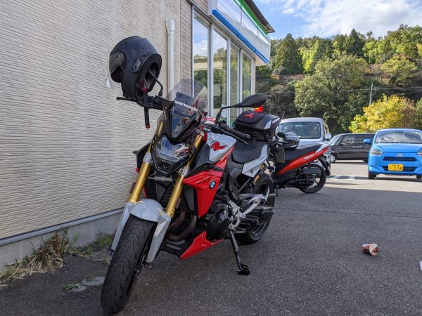 その後は亀岡で給油をして、「ファミリーマート亀岡下矢田店」で軽く昼食を食べました。バイクの横に転がっている紙コップはわたしのではありませんが、ちゃんと捨てておきました。ポイ捨てするとはマナーがなってないですね。