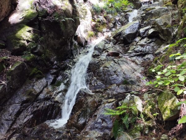 登山道の途中で滝を見つけたので立ち寄りました。特に説明看板も無く、無名の滝のようでした。