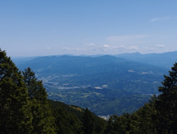 山頂から見た「大阪方面」の景色です。ここで景色を見ながら昼食をいただきました。写真には写っていませんが、平日なのに登山客がいっぱいで驚きました。休日だったらもっと混み合うんでしょうね。
