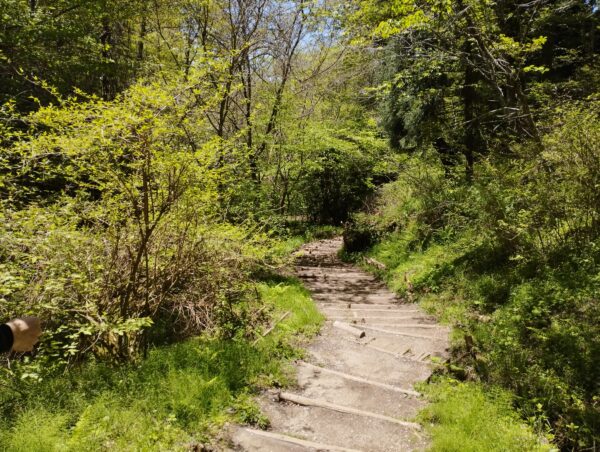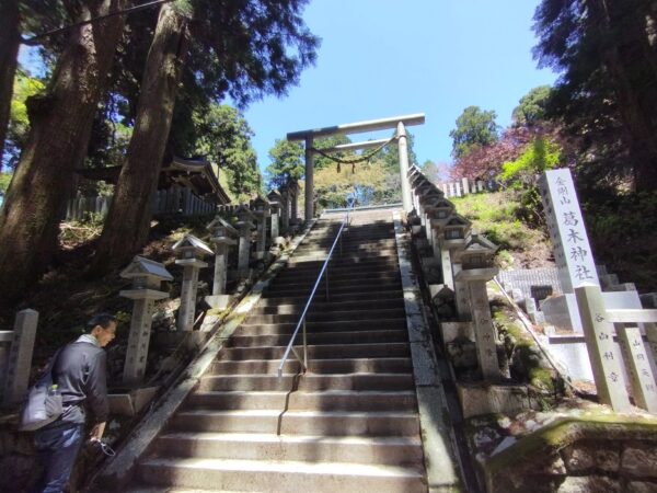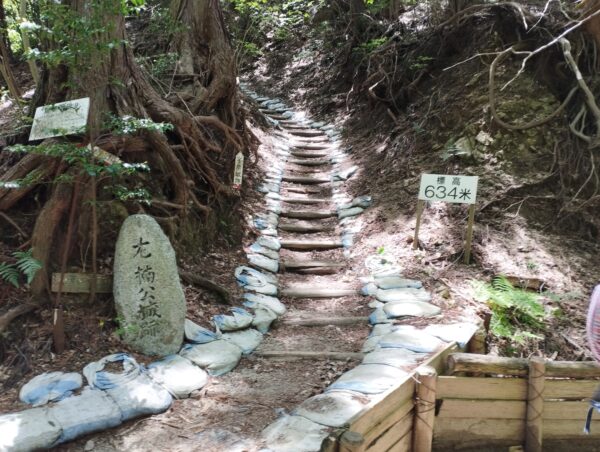 「千早本道ルート」はひたすら階段です。「伏見峠ルート」は急峻な坂道だったので、タイプの違う登山ルートがあるんですね。M氏とは、次回は逆回りで登ってみようと相談しました。
