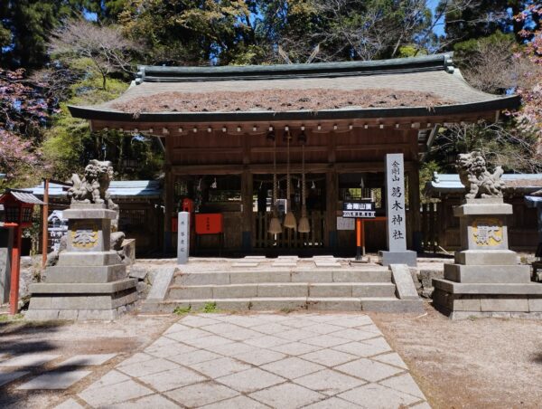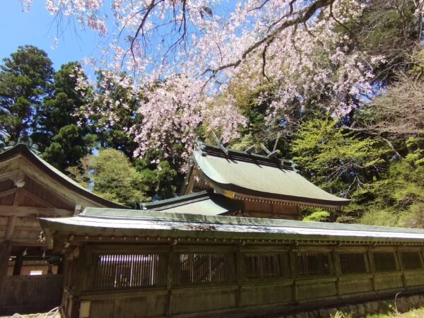 「奥にある奥にある「本殿」を横から見てみました。たしかに「大社造」で、屋根の感じが「伊勢神宮」や「出雲大社」と同じ造りですね。さすがは「金剛山」山頂にあるだけあって、しだれ桜がまだ咲いていました。