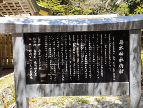 「金剛山」に入りました。「葛木神社 一の鳥居」とその手前にある説明看板です。残念ながら説明文は経年劣化で上手く読めません。