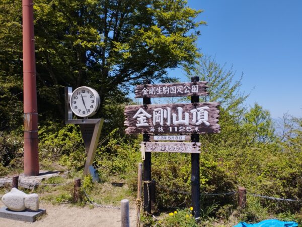 「金剛山」山頂に到着しました。登山開始が10時で山頂到着が11時25分なので、約1時間25分かかりました。
