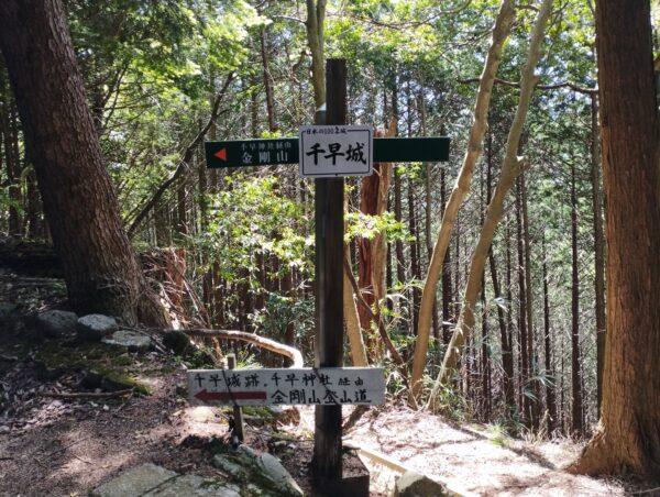 「千早本道ルート」は階段が整備されており、適宜案内看板も設置されていますが、意外と分岐点に案内看板がなかったです。