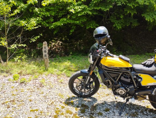 最近は雨が多くて林道を走るのは、バイクが泥まみれになるので避けたいところなのですが、滝を観るためには仕方ありません。今回は福井県おおい町にある滝や神社を巡ってきました。コーヒーの割引券があったので「セブンイレブン園部内林店」でコーヒー休憩と昼食の調達をして、「新鞍の大滝」と「夫婦滝」への入口と思われる「新鞍神社」を目指しました。