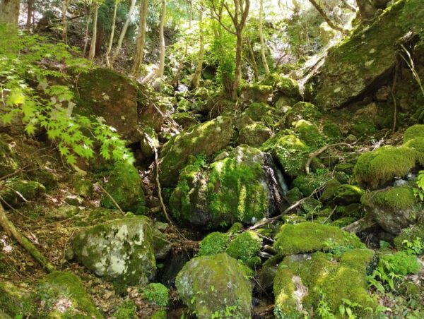 「夫婦滝」の向かって左側の滝が「雌滝」らしいです。残念ながら水はちょろちょろとしか流れていませんでした。「夫婦滝」って2つの滝がある場合と、滝が2つの流れに分かれている場合があるので、初めは2つに分かれている方かなと思っていました。