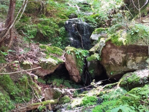 「新鞍神社」の西隣に「林道新鞍谷線」の入口があり、おそらく林道沿いに滝が有るのではないかと見当を付けました。(この林道はグーグルマップに掲載されていないので、山の中にぽつんと「新鞍の大滝」や「夫婦滝」のマーカーがあるだけです。)
