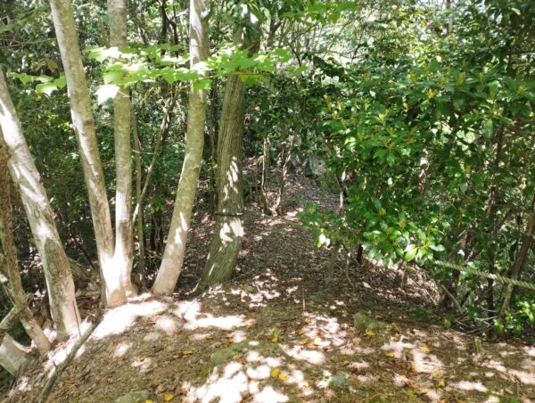 バイクを駐めた場所に戻る途中ですが、天狗の鼻先(後方)へ向かって降っているのがわかると思います。(つまり戻り道はずっと登りです。)