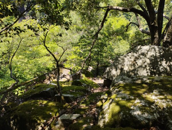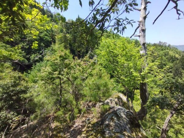 ロープに掴まりながら岩山を降りていったのですが、どうやら天狗の形の岩があるのではなく、天狗に鼻のように長い岩山があるのではないかと思いました。