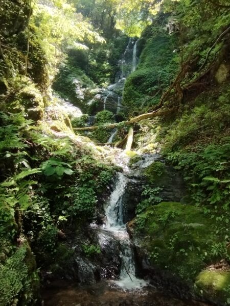 「新鞍の大滝」へは50mくらい山の方へ歩きます。高さもあるし多段の滝で見応えは十分でした。