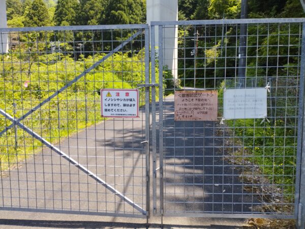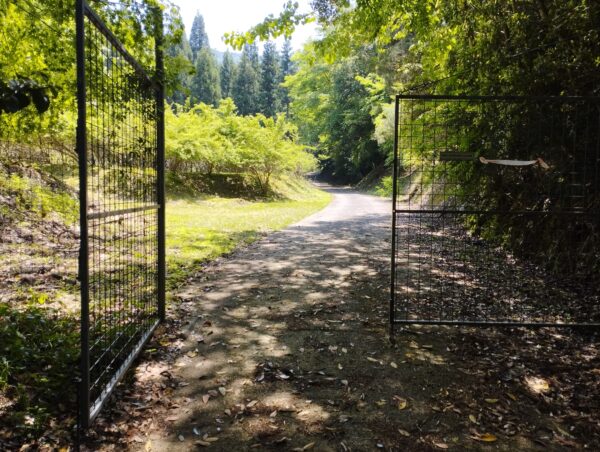 最後の滝である「不動の滝」へ向かいます。「不動の滝」は「不動滝公園 ふるさと小公園]内にあります。公園の手前に害獣対策フェンスがありますが、開閉して進むとすぐ公園の駐車場に到着します。