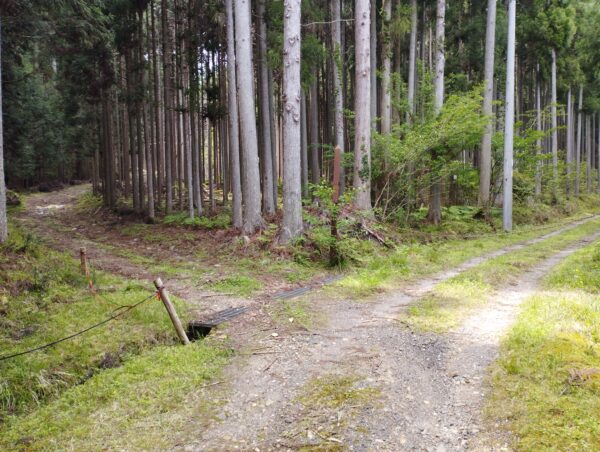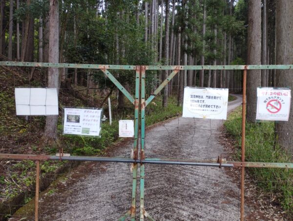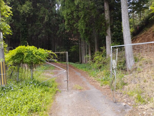 害獣対策フェンスを開閉して進みます。駐車スペースがあったかは記憶にありません。