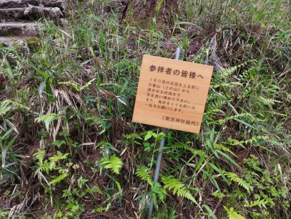 「賀茂神社」の参道入口に、「天童山」からの伏流水で手を清めるようにとの案内があります。(もちろん清めました。)
