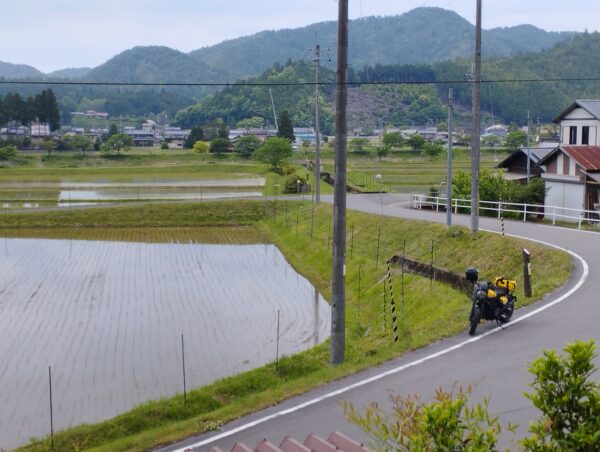 バイクを駐めた場所に戻ってきました。水田の広がるのどかな田舎って感じです。