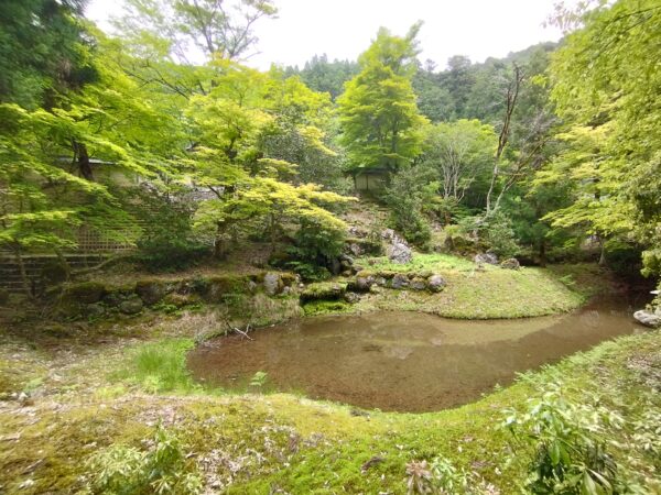 「常照皇寺」の庭園です。禅宗のお寺なのですが枯山水とかではないようです。駐車場で昼食をいただき、「灰屋川」流域の目的地に向かいました。