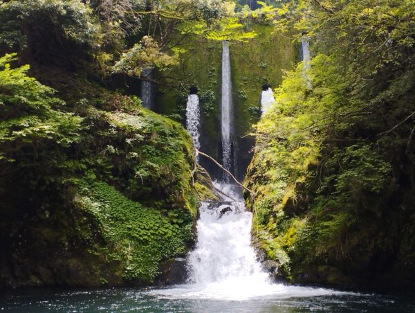 「灰屋の滝」です。この滝は自然のものではなく人造のダムなのですが、水の落ち方がユニークなのと水量もあり、迫力のある景観を作り出しています。