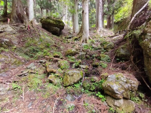 少し歩くとまた三叉路がありました。グーグルマップでは右に行く方が「大山祇神社」に近いと思ったのですが、獣道のような所を歩く羽目になりました。林道を真っ直ぐ進むのが正解でした。