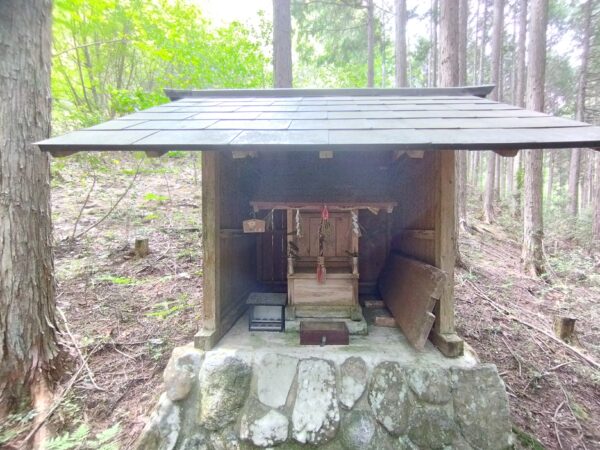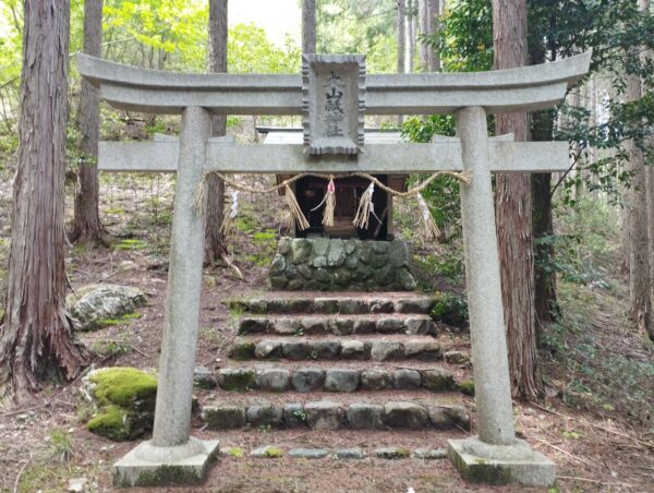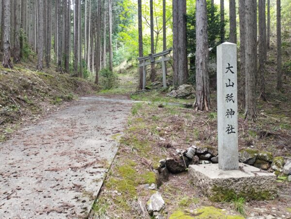 林道の左手に「大山祇神社」がありました。ちゃんと神社名を記した石碑が建っていました。