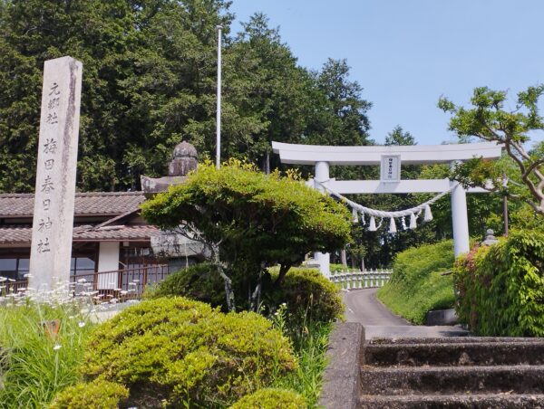 「梅田春日神社」の「鳥居」です。駐車場はこの写真の右手にありました。