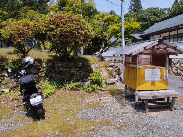 次は「神池寺」に向かいました。右手の黄色い箱は参拝者や「妙高山」への登山者への「志納金」のお願いです。ここは登山口でもあるんですね。ちゃんと300円納めておきました。