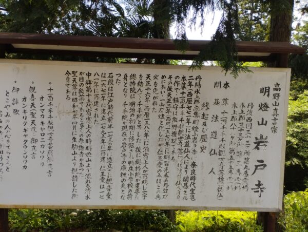 「岩戸寺」の説明看板です。こちらも奈良時代の開基だそうです。「法道仙人」のことも書いてありました。