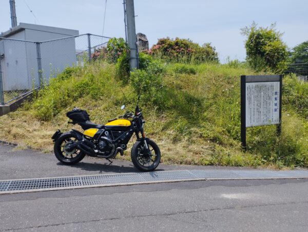 次は「鹿集(かたかり)城址」です。城址は現在「市島中学校」になっています。バイクは中学校の正門前にUターンして駐めています。あわやバイクで中学校に突入するところでした。