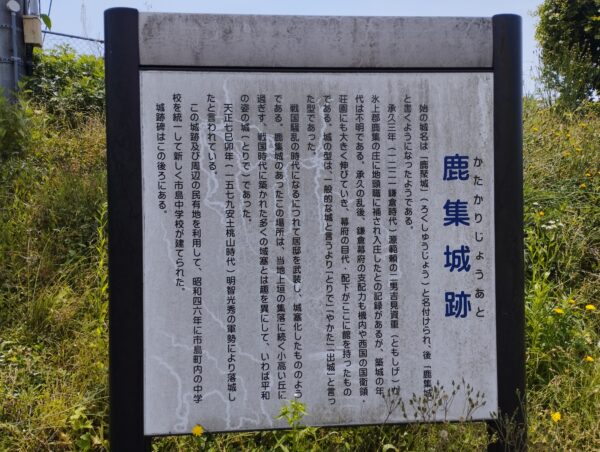 「鹿集城址」の説明看板です。鎌倉時代のお城なんですね。
