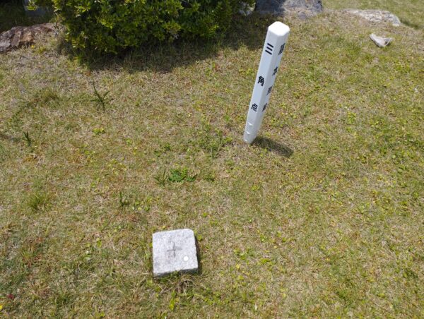 説明看板の背後に「城跡碑」があると記載されていました。たぶんこれだと思うのですが、正面から撮影するためには校内に入らなければならないので断念しました。