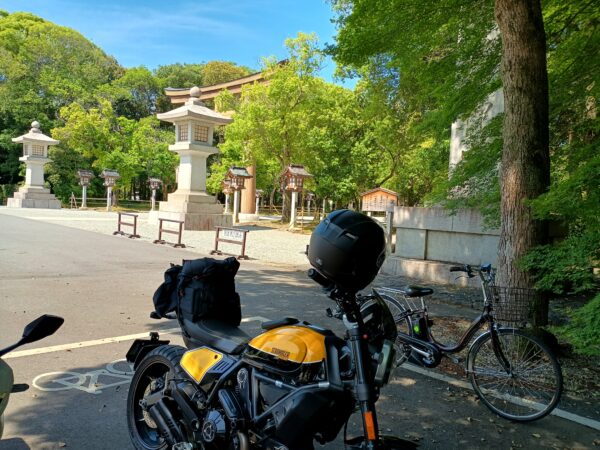 「橿原神宮」の駐車場に到着しました。何も考えずに駐車券を取ったのですが、自転車やバイクは無料でした。
