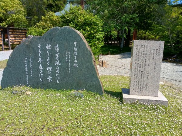 「拝殿」の横に平成31年に皇后陛下の詠まれた歌の歌碑がありました。