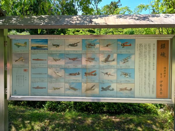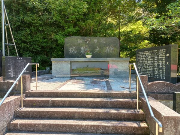 グーグルマップを見ていると「航空母艦瑞鶴之碑」が右手にあるので、右手の小径に入って向かいました。「碑文に関わる機種並びに特殊兵器」が掲示されていました。