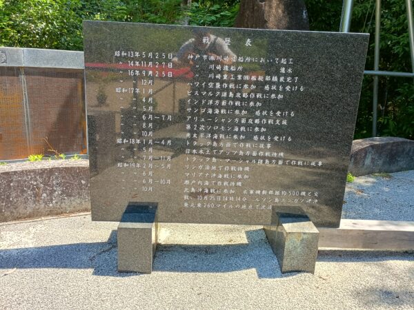 「航空母艦瑞鶴之碑」の左側にある「戦歴表」です。