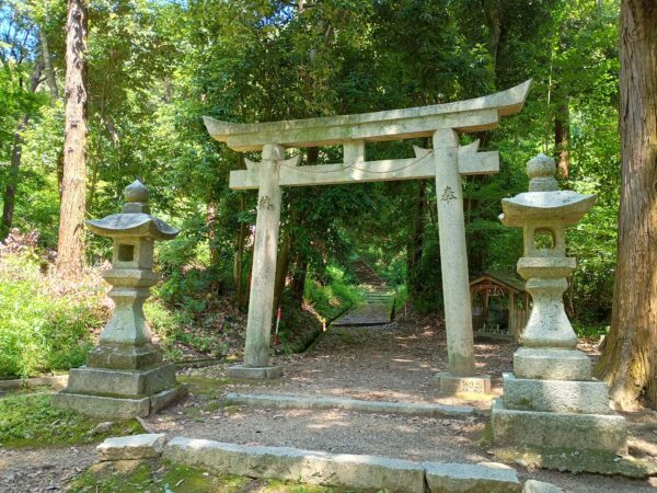 小径を戻って登山道に入ると、すぐに「東大谷日女命神社」の「鳥居」があります。
