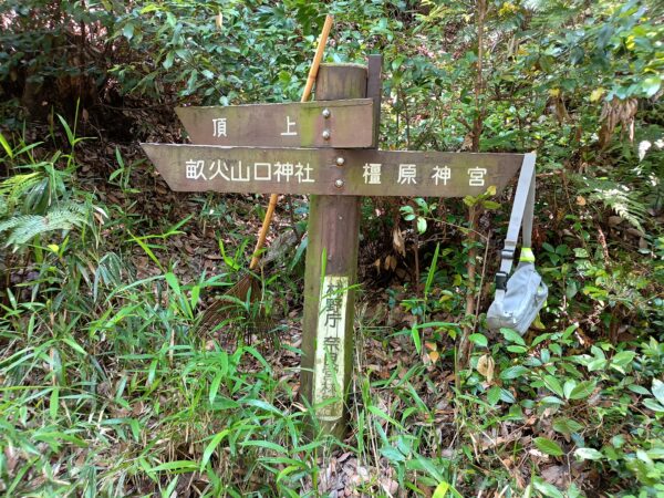 登山道を進むと四叉路があり、わたしが進んできた道が「橿原神宮」方面、「畝傍山」へは「頂上」方面、「畝火山口神社」方面には2本の道がありますが、どちらでも行けるみたいでした。