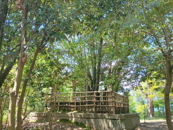 柵に囲まれて「禁足地」になっている木がありました。これは「畝火山口神社」の御神木だったのかも知れません。