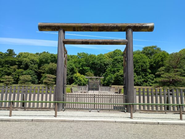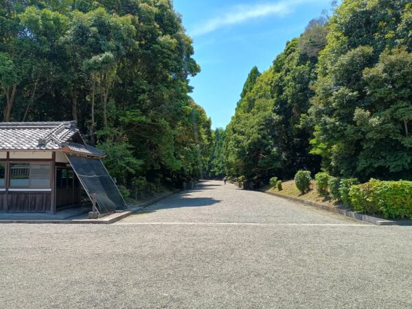 グーグルマップの案内で「神武天皇陵」に向かいました。「神武天皇陵拝所」です。正面が陵墓ですが、ここから先へは立入ることはできません。