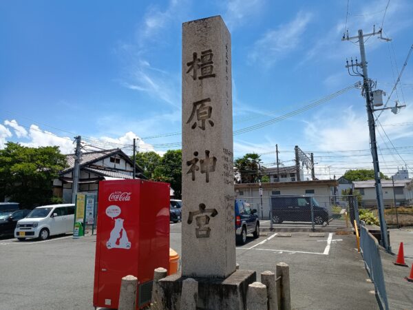 「畝傍駅」の西側に「橿原神宮」の石碑がありました。最寄り駅アピールなのでしょうか。